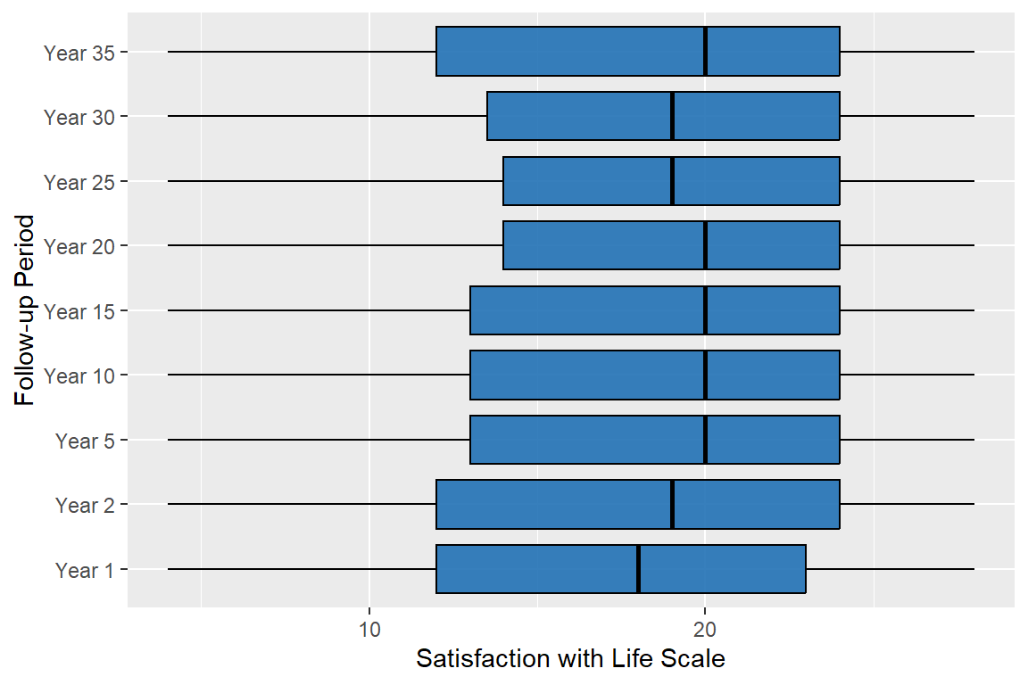 | N Non-missing | 5,067 | 4,948 | 5,046 | 4,239 | 2,869 | 1,781 | 572 | 209 | 33 |
